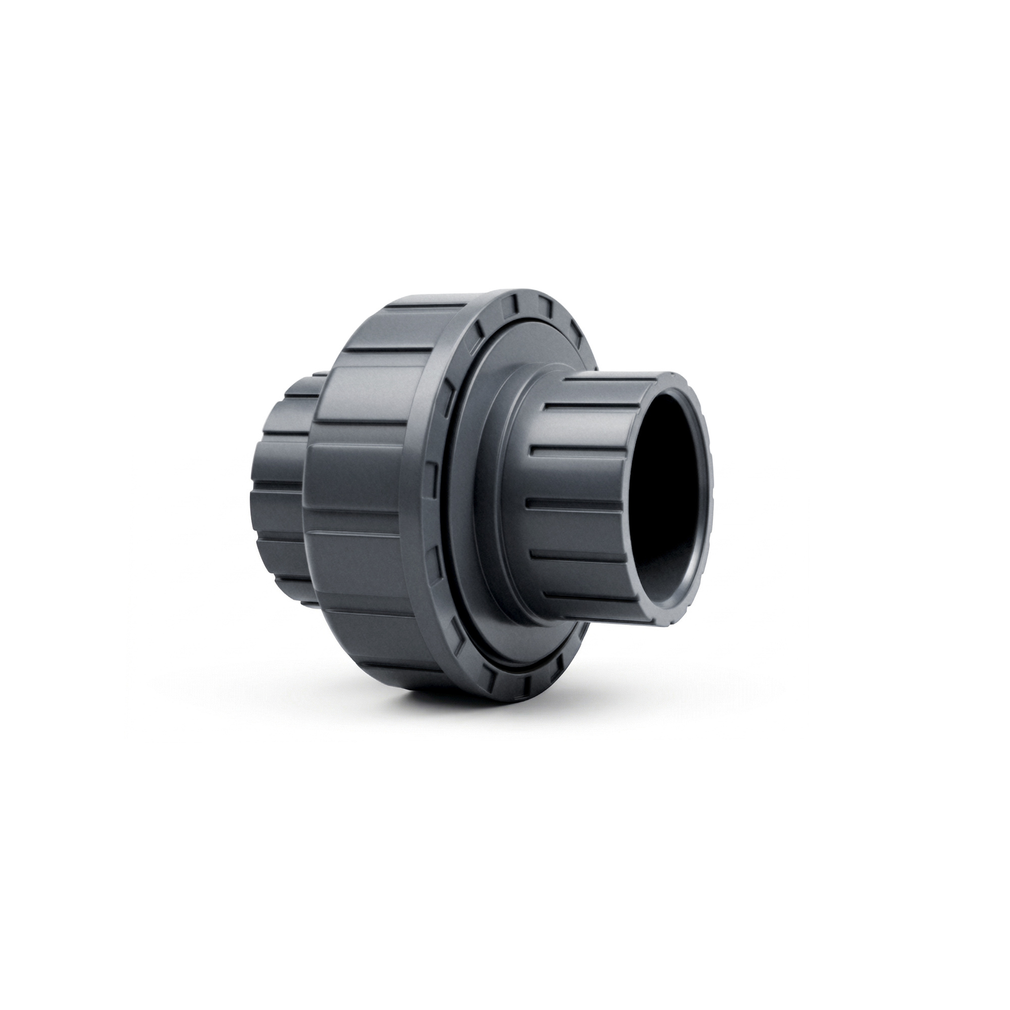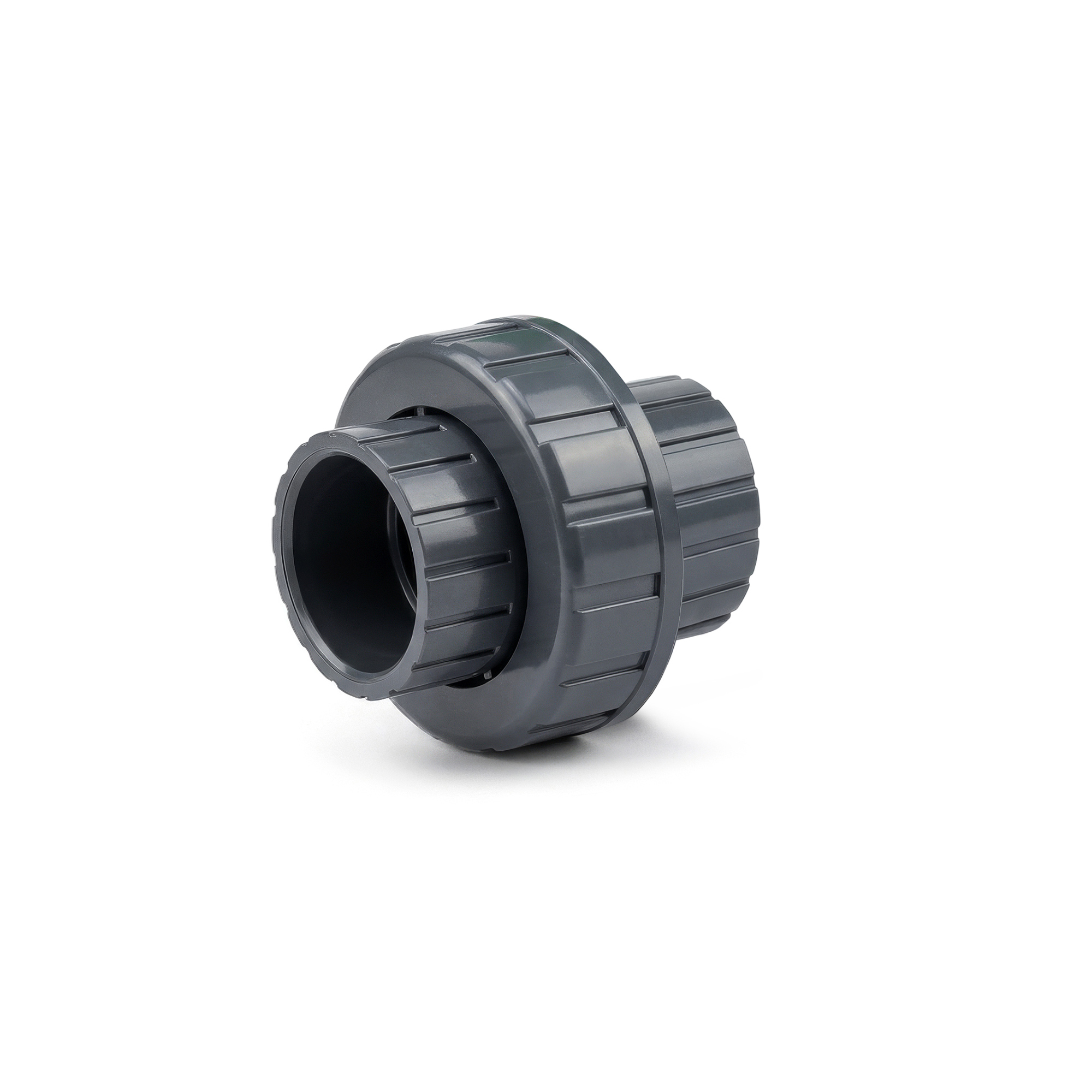 Unión doble de PVC inyectado para conducción de agua bajo presión. Fabricación Nacional. Técnología y fórmula Insumos Plásticos. Utilizado en Agro, piletas y riego.